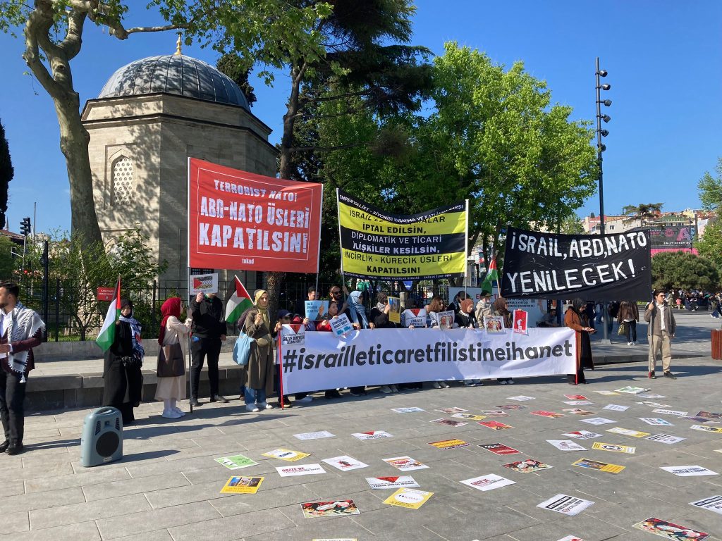 Haftalardır Türkiye’nin dört bir yanında “İsrail’le ticaret Filistin’e ihanet” sloganıyla eylemler yapılıyor. Pazar günü İstanbul’da Beşiktaş Meydanı’nda Eğitim İlke-Sen, TOKAD, Özgür Yazarlar Birliği ve Sağlık İlke-Sen bir araya gelerek basın açıklamasında bulundu. İsrail’le anlaşmaların iptal edilmesinin, diplomatik ve ticari ilişkilerin sonlandırılmasının, NATO’dan çıkılarak emperyalist üslerin kapatılmasının talep edildiği eylemde “Yaşasın küresel intifada” sloganları atıldı ve soykırımcı İsrail lanetlendi.