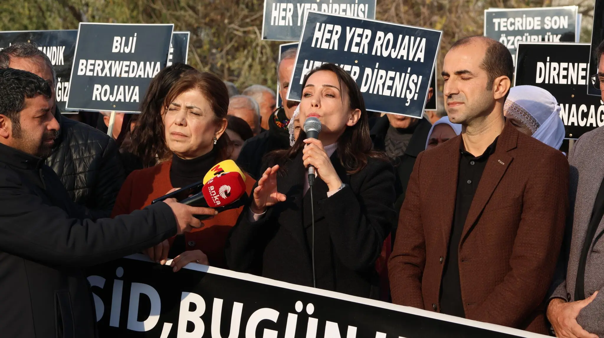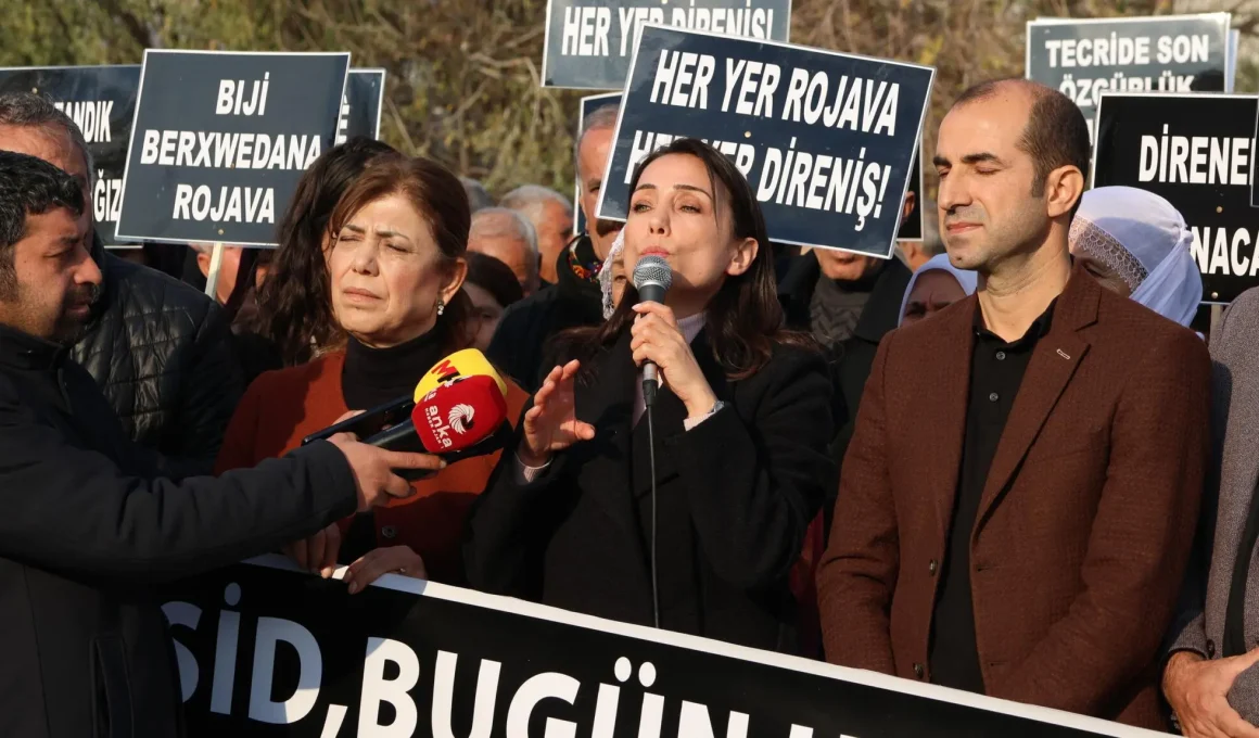 Halkların Demokratik Kongresi (HDK) Eş Sözcüsü Meral Danış Beştaş, DBP Eş Genel Başkanları Çiğdem Kılıçgün Uçar ve Keskin Bayındır ile DEM Parti Eş Genel Başkanı Tülay Hatimoğulları’nın da aralarında olduğu kitle, yürüyüş sonrasında açıklama yaptı. Protesto eyleminde, “Bijî berxwedana Rojava” ve “Rojava kırmızı çizgimizdir” dövizleri taşındı.