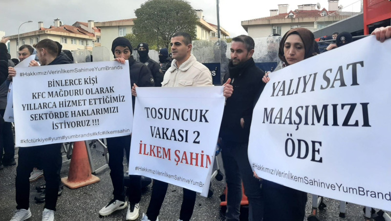 İş Gıda’ya bağlı olarak KFC Türkiye ve Pizza Hut bünyesinde çalışan işçiler, İş Gıda’nın konkordato ilan etmesi üzerine işsiz kaldı. Alacaklarını isteyen işçiler şirket önünde eylem yaptı. İşçilerin yaptığı eyleme DİSK’e bağlı Gıda-İş Sendikası destek verdi. (6 Şubat)
