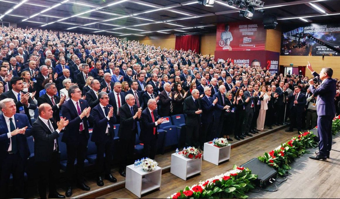 CHP Genel Başkanı Özgür Özel, kurultayda yaptığı konuşmada önemli mesajlar verdi. Saraçhane protestolarından önce yapılan anket ortalamalarında CHP’nin birinci parti çıktığını söyleyen Özel, “Bugün Türkiye’yi; seçimden, rakibinden, milletten korkan bir cunta yönetmektedir. Tayyip Erdoğan halkın desteğini arkasına alan bir cumhurbaşkanı değil, halkın desteğini alanları, kendine rakip olabilecekleri hedef alan bir cunta başkanına dönüşmüştür. Çünkü artık meşrutiyeti yoktur. Seçimden, sandıktan, sokaktan ve milletten korkmaktadır. Zaman, demokratik yollarla o cuntayı dağıtmanın zamanıdır” dedi.
