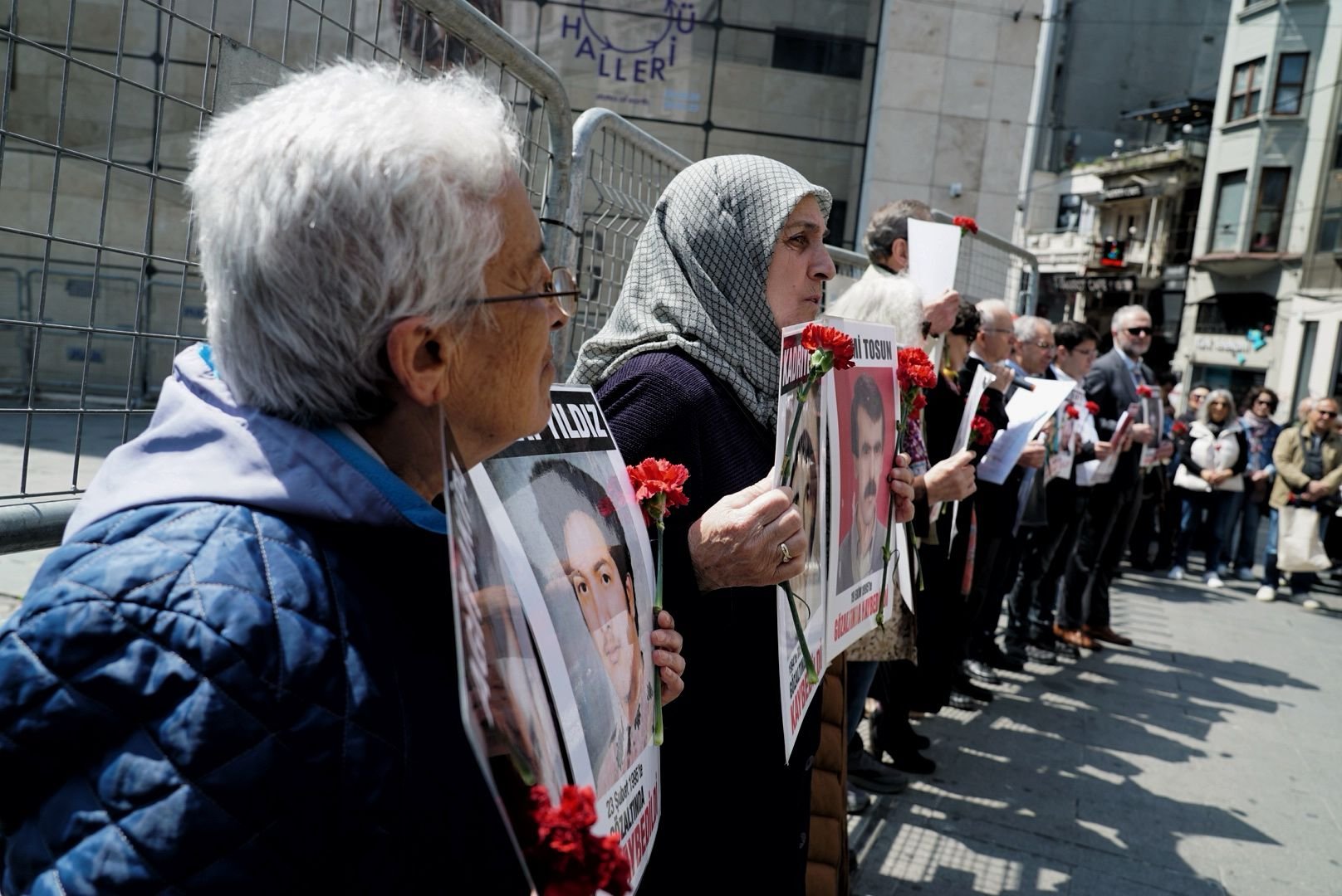 Gözaltında kaybedilen yakınlarının akıbetini soran ve faillerin yargılanması talebiyle İstanbul-Beyoğlu’nda 1995’ten bu yana eylem yapan Cumartesi Anneleri, bu hafta (26 Nisan 2025) Galatasaray Meydanı’na karanfil bırakarak açıklamalarını okudu.