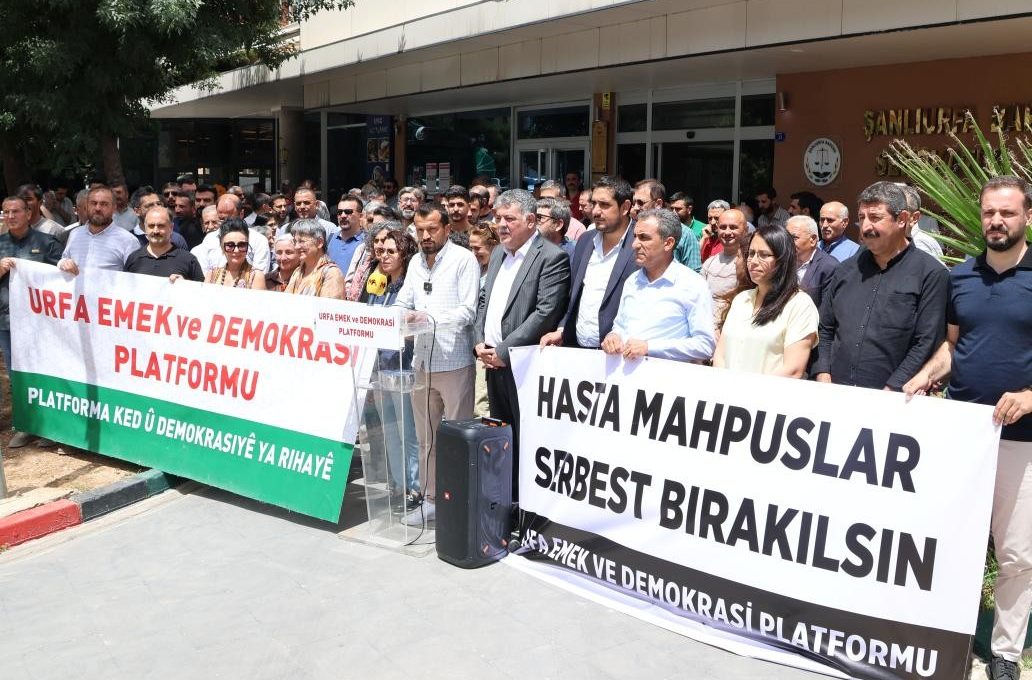 Şanlıurfa’da Emek ve Demokrasi Platformu, cezaevlerinde tutulan hasta tutsaklara dikkat çekmek için “Barışın inşasında ilk adım hasta mahpuslar serbest bırakılsın” başlıklı panel düzenledi. Şanlıurfa Barosu Avukat Tahir Elçi Konferans Salonu’nda yapılan panele, platform temsilcilerinin yanı sıra insan hakları savunucuları, siyasi parti temsilcileri ve çok sayıda kişi katıldı.