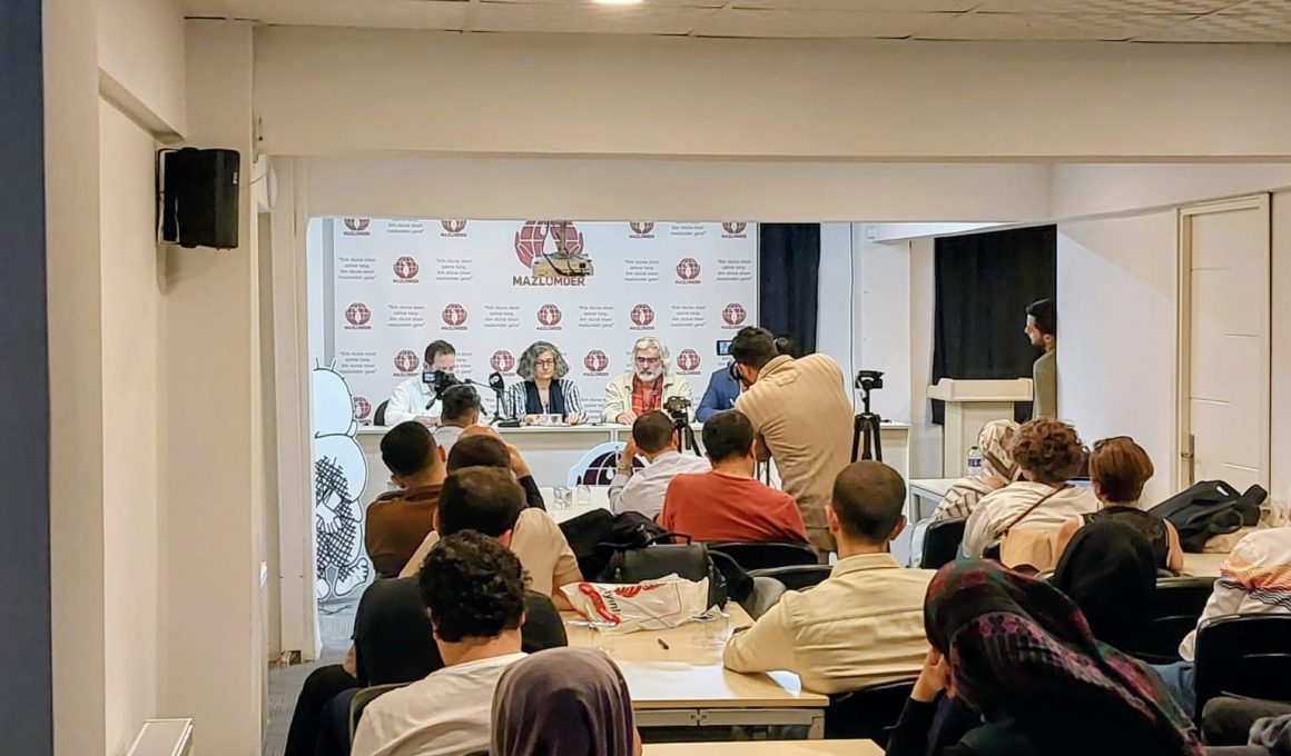 Suriyeli insan hakları savunucusu Taha Elgazi ve eşinin uğradığı hukuksuzlukları ve sınır dışı edilmelerini protesto etmek için düzenlenen basın açıklaması, Mazlumder İstanbul binasında yapıldı.