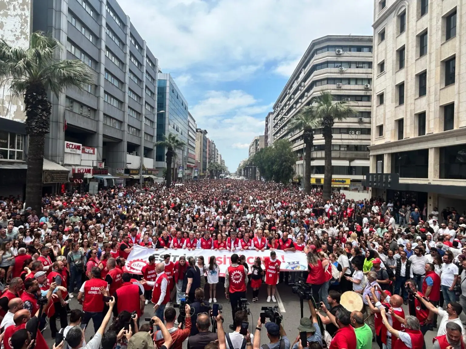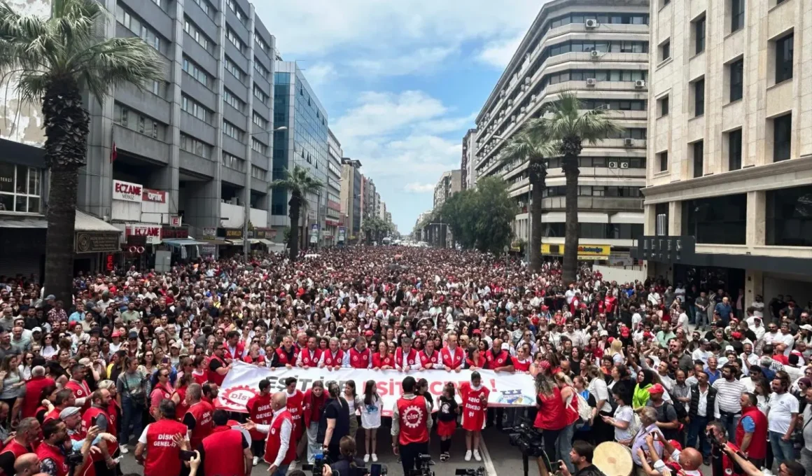 DİSK’e bağlı Genel-İş Sendikası öncülüğünde düzenlenen yürüyüşte, işçiler İzmir Büyükşehir Belediye Başkanı Cemil Tugay’ın yüzde 29,16’lık zam teklifini “sefalet ücreti” olarak nitelendirdi. “Eşit işe, eşit ücret” talebini yineleyen işçiler, grev kırıcılığı yapıldığı gerekçesiyle de belediye yönetimine tepki gösterdi.