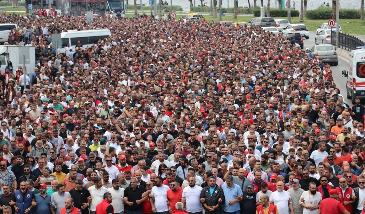 İzmir Büyükşehir Belediyesine bağlı İZELMAN, İZENERJİ ve Egeşehir’de çalışan 23 bin işçiyi ilgilendiren sözleşme, baskı ve kuşatmayla imzalandı. İlk 6 ay için yüzde 30 zam, ikinci 6 ay için yüzde 17 enflasyon farkı üzerine yüzde 2 refah payına imza atıldı. 7 gün süren grev boyunca işçiler hedef gösterildi, aldıkları ve istedikleri ücretler üzerinden manipülasyonlar yapıldı.