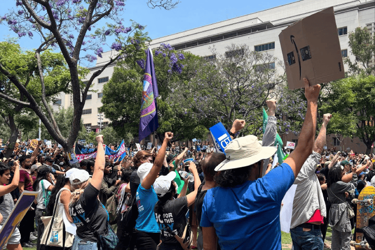 Los Angeles dört gün üst üste göçmen hakları için sokağa çıktı. Çoğu yerde Community Self Defense Coalition öncülüğünde binlerce kişi ICE’nin şehir genelinde gerçekleştirdiği bir dizi baskına tepki olarak sokaklara döküldü. Trump 30 gün boyunca şehirde kalacaklarını söyledi.