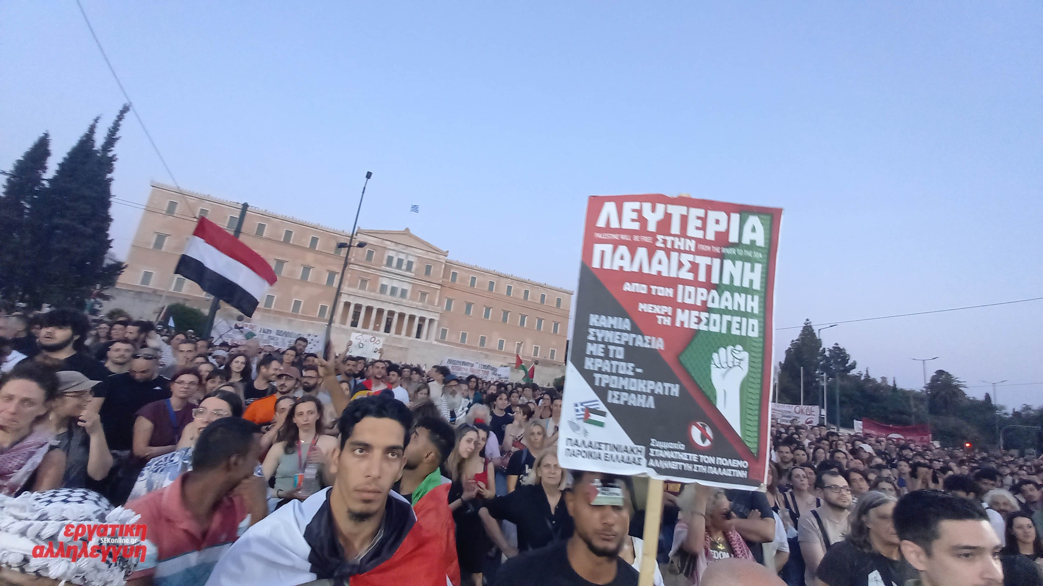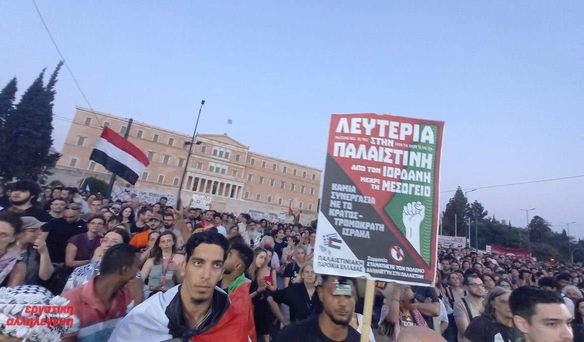 Yunanistan’da Filistin’le dayanışma ve Küresel Gazze Yürüyüşü’ne destek için büyük bir gösteri düzenlendi. Parlamento binasının önündeki Sintagma Meydanı’nı dolduran Yunanistan halkı, “Özgür Filistin” sloganları attı. Larissa’daki mitinglerin yasaklanması protesto edildi ve İsrail Büyükelçiliğine yürüyüş düzenlendi.