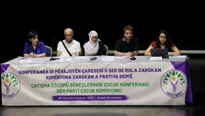DEM Parti Çocuk Komisyonu tarafından düzenlenen “Çatışma ve Çözüm Süreçlerinde Çocuk” başlıklı konferans, Diyarbakır’daki Çand Amed Kongre Merkezi’nde gerçekleştirildi. Konferansa kentteki sivil toplum örgütleri ve siyasi parti temsilcilerinin yanı sıra Diyarbakır Büyükşehir Belediye Eşbaşkanı Serra Bucak, ilçe belediye eşbaşkanları ile yaşamını yitiren Cemile Çağırga, Rozerin Çukur ve Mehmet Uytun’un aileleri katıldı.
