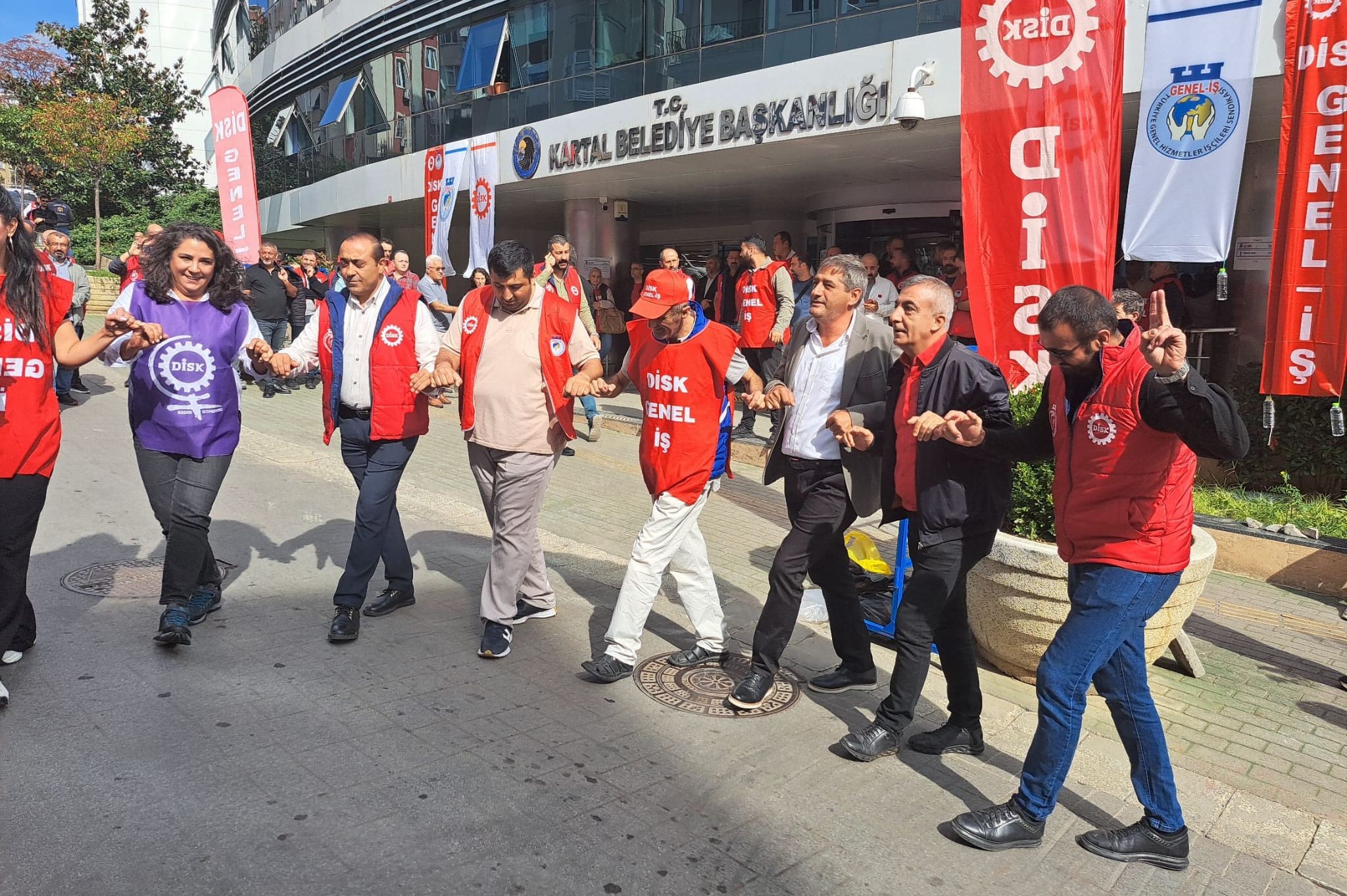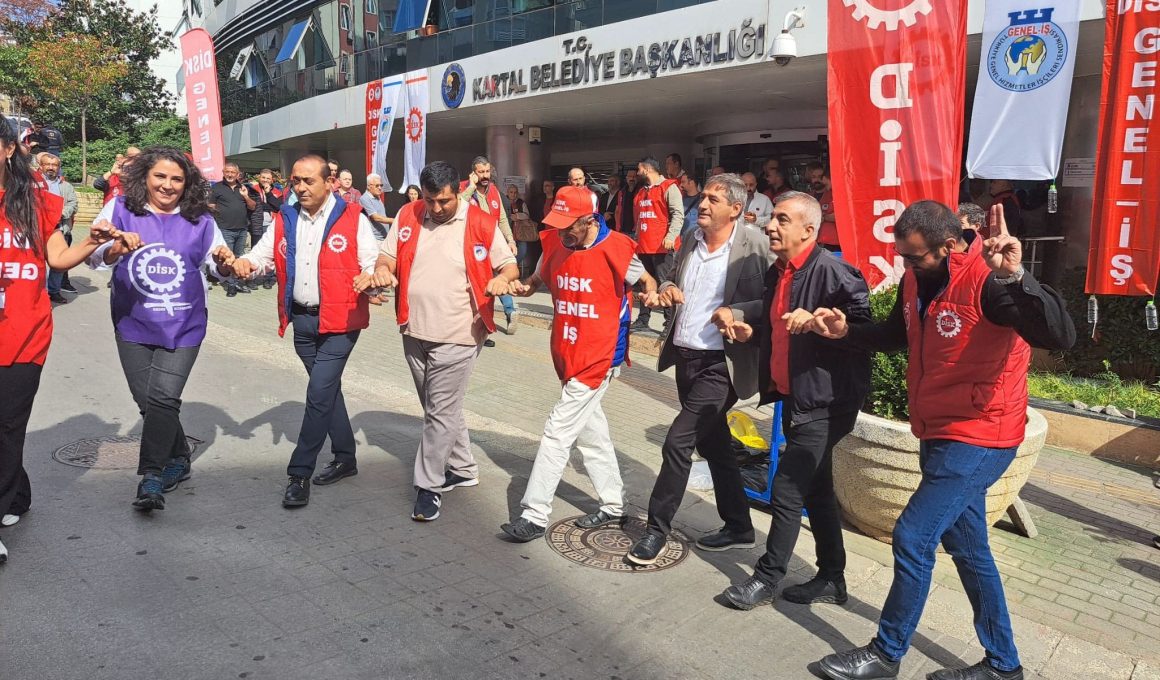 Kartal Belediyesi işçileri, ücretleri aylardır ödenmediği ve temmuz ücretleri de eksik yatırıldığı için yarım günlük iş bırakma eylemi yaptı. (25 Ağustos)