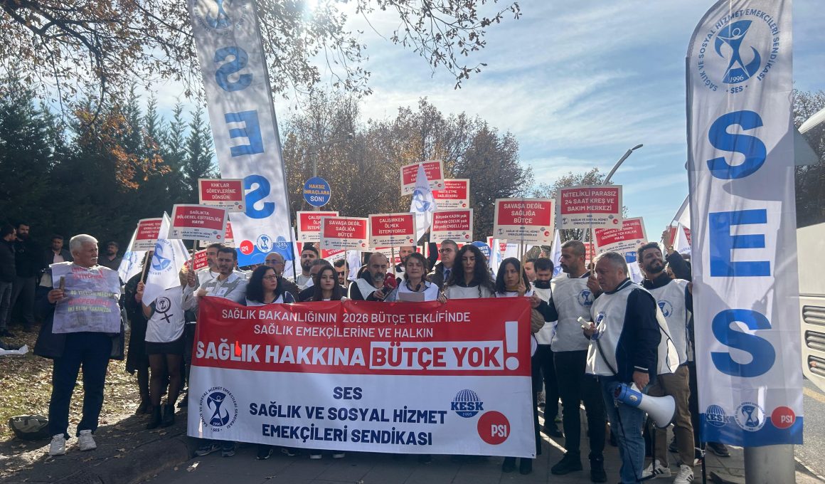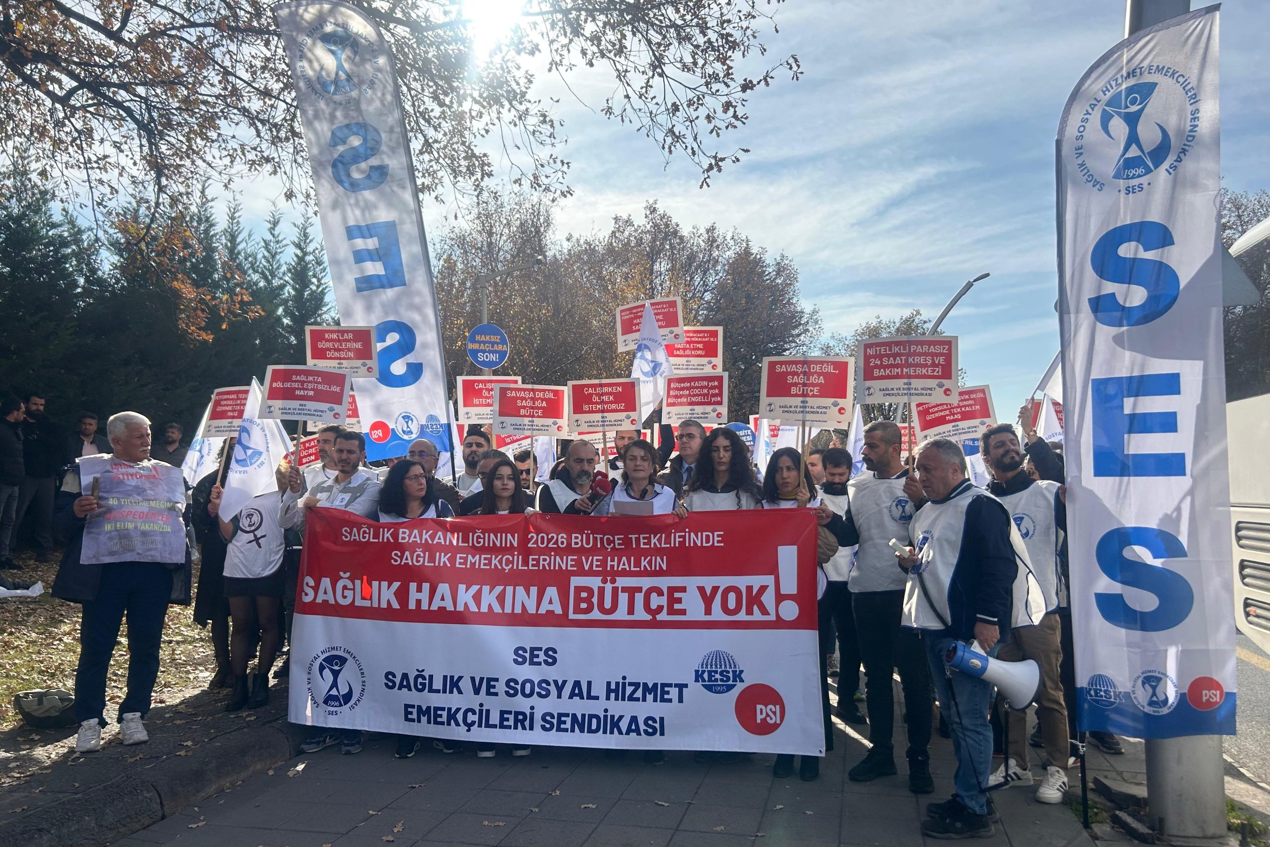 Sağlık ve Sosyal Hizmet Emekçileri Sendikası (SES), Sağlık Bakanlığı bütçe görüşmelerine ilişkin TBMM önünde basın açıklaması gerçekleştirdi.
