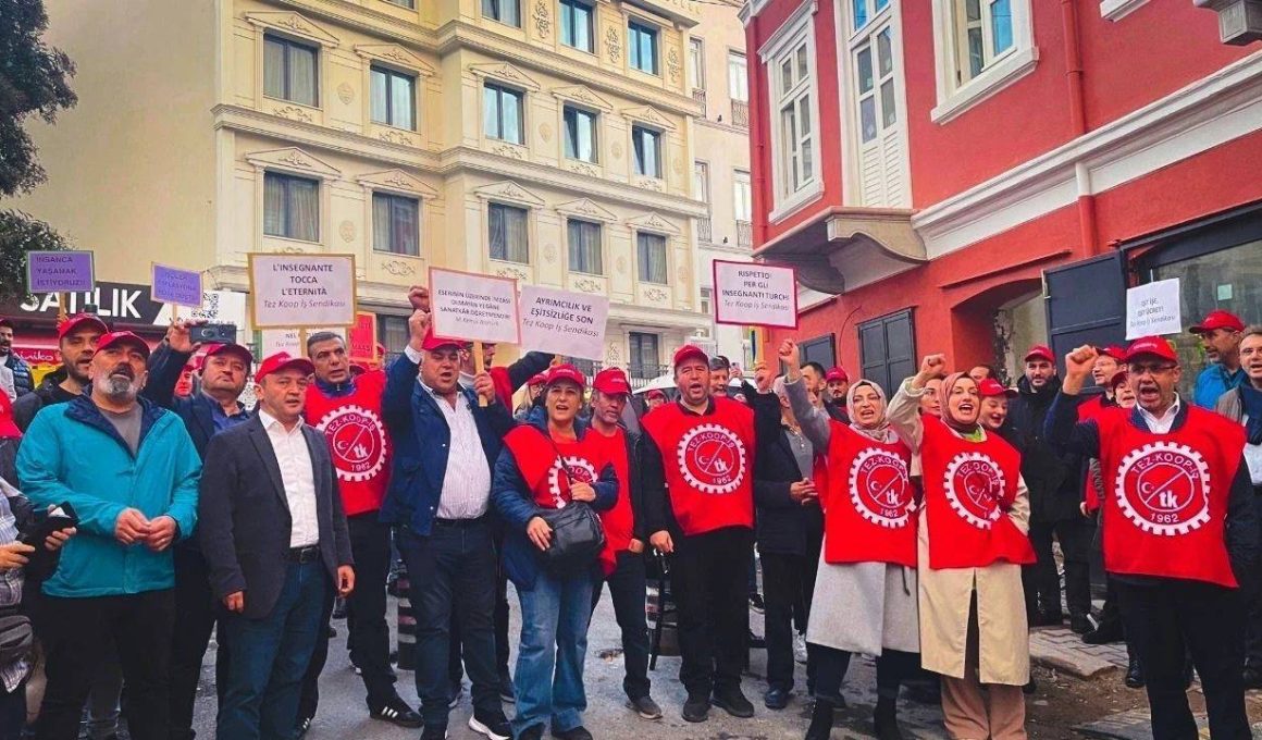 Özel İtalyan Lisesinde TİS görüşmelerinin tıkanması üzerine emekçiler greve çıktı. Tez-Koop-İş Sendikası, ücret eşitsizliği giderilene kadar mücadelenin süreceğini açıkladı.