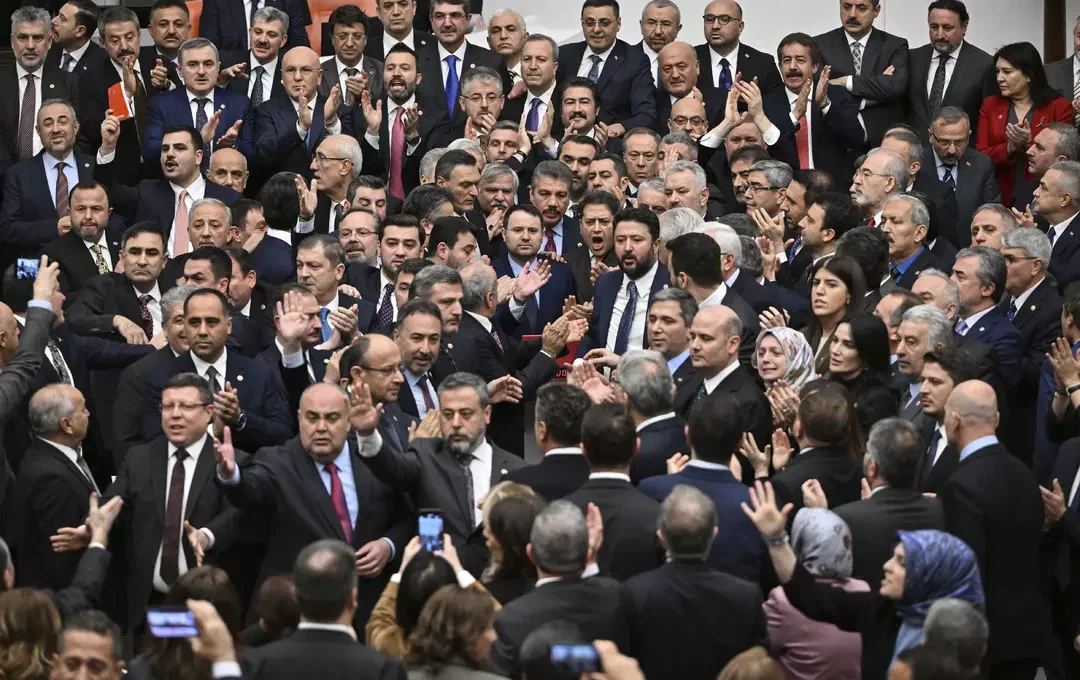 Yılmaz Tunç’un yerine Adalet Bakanı olarak atanan Akın Gürlek yemin etmek için kürsüye çağrılınca Meclis’te kavga çıktı.