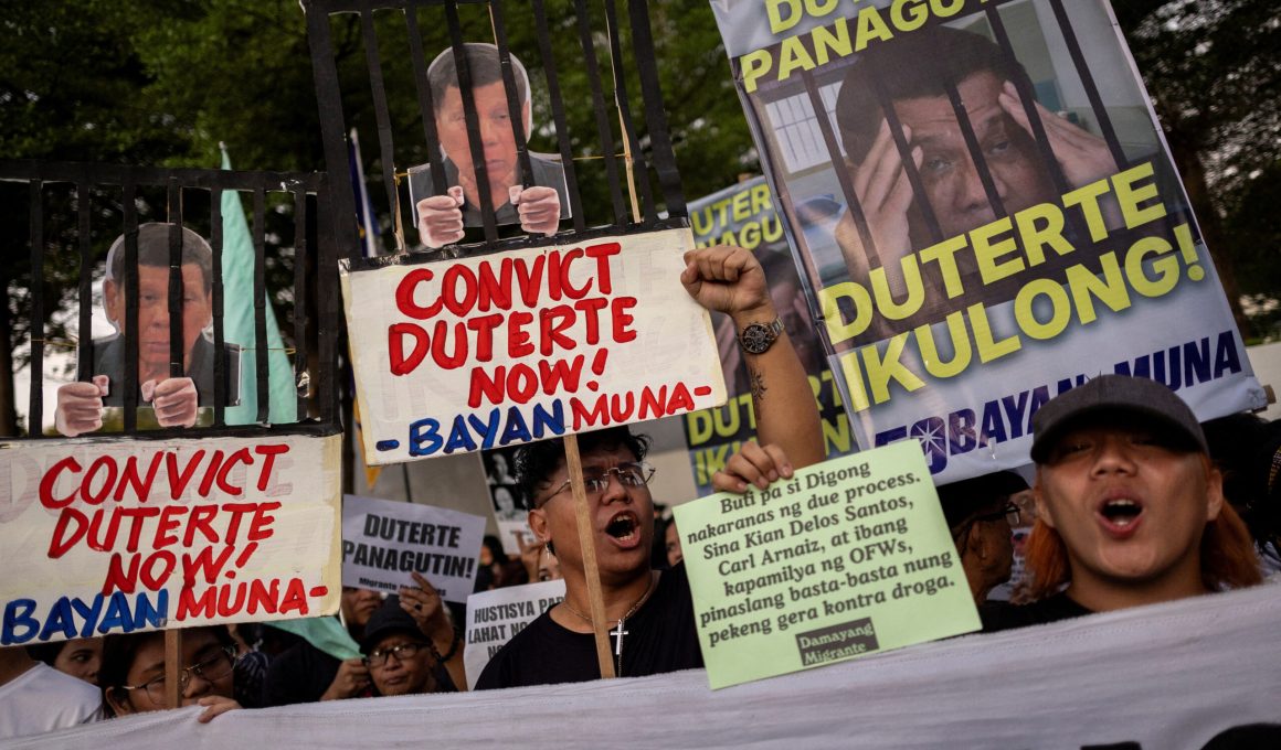 12 Mart 2025’te Duterte, Uluslararası Ceza Mahkemesi’ne teslim edildi. Duterte’nin ilk duruşması 14 Mart 2025 tarihinde gerçekleşti.